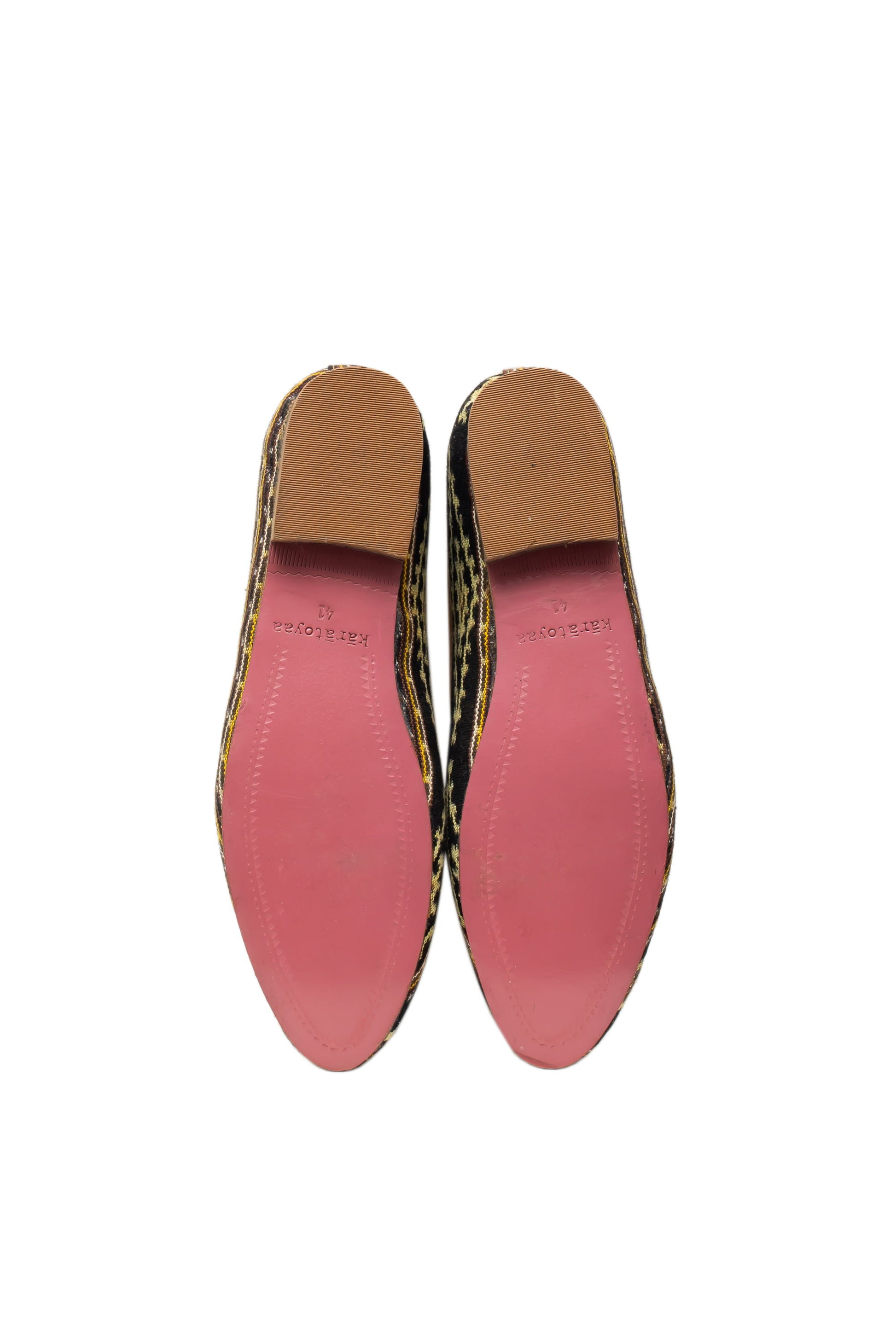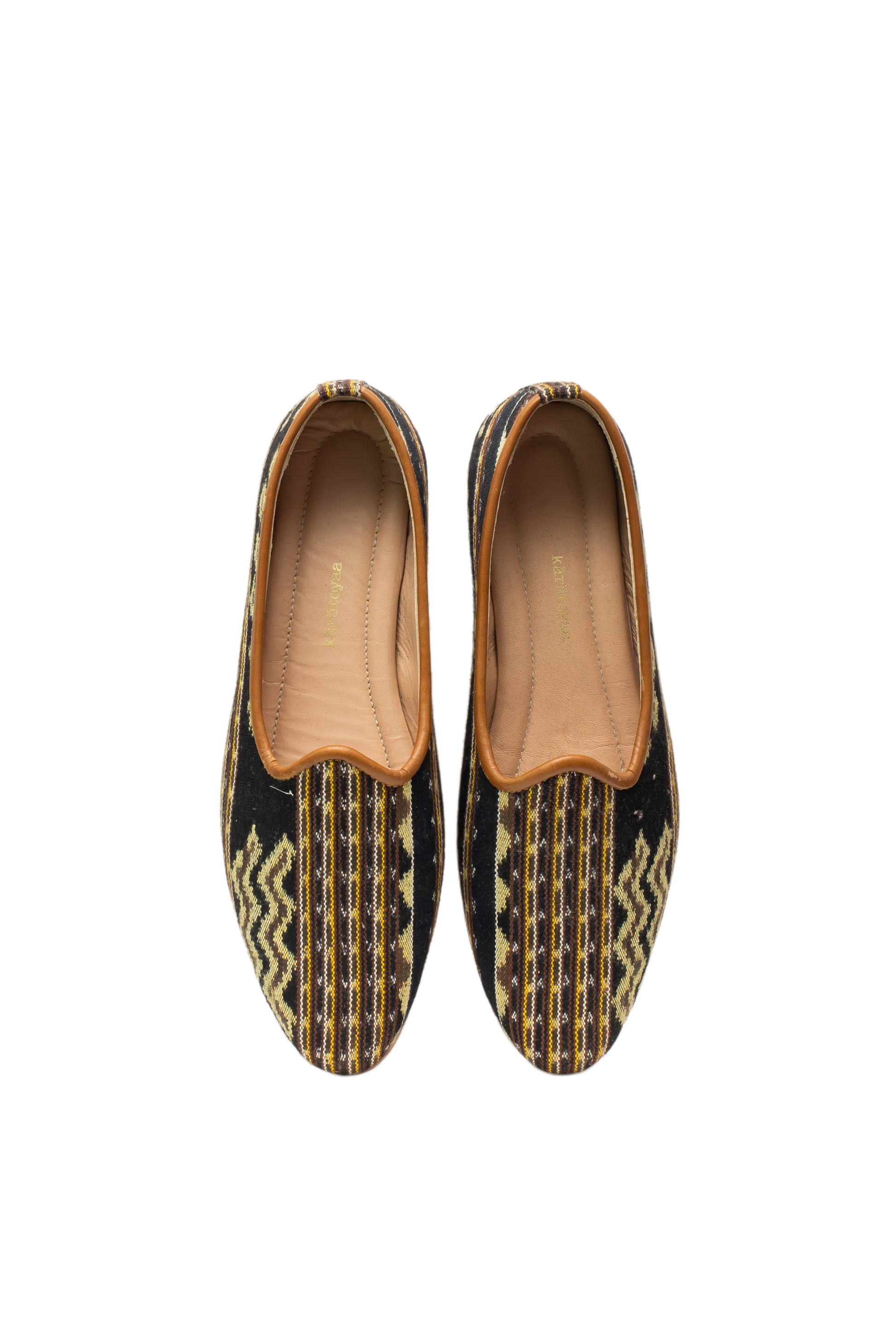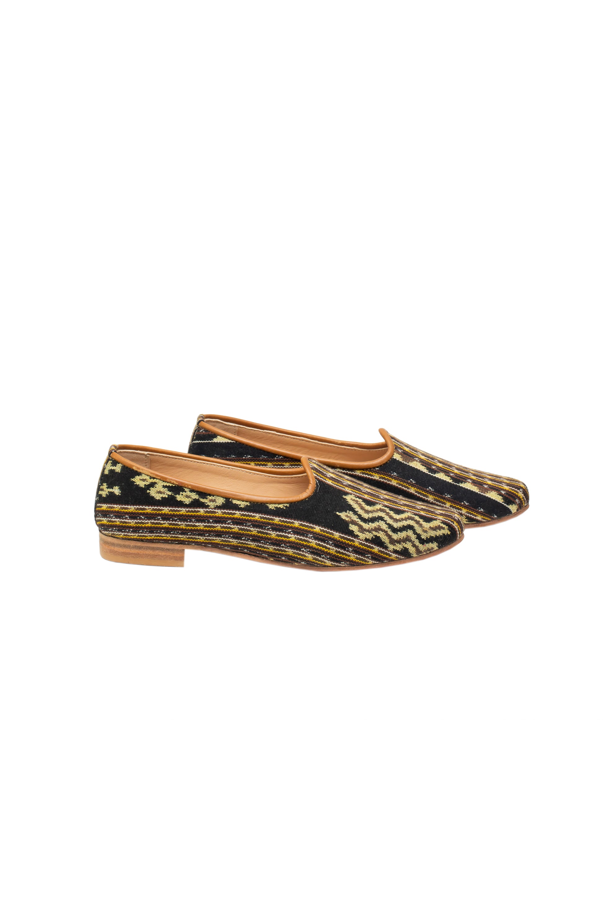These are very special hand-crafted leather loafer style shoes. To create this pair, we’ve used vintage naturally dyed handwoven ikat textile from Indonesia.
